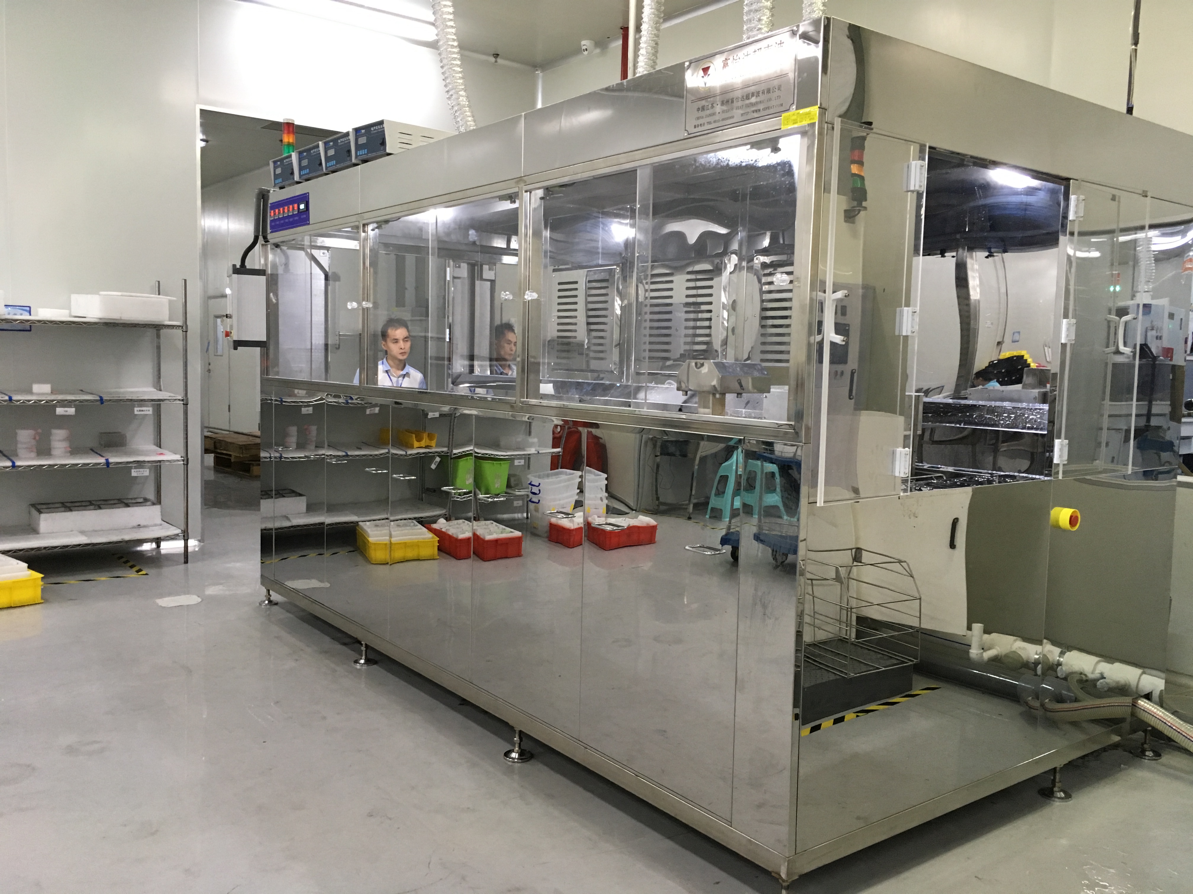 富一達擁有清洗工藝驗收實驗室,配置有28KHZ、40KHZ、80KHZ、120KHZ、200KHZ等不同頻率的超聲波清洗設備、噴淋清洗設備、熱風(遠紅外)干燥設備、真空干燥設備。可根據用戶不同要求做工藝驗證試驗,后期富怡達還會增加無法潔凈室,并配套清潔度檢測設備。